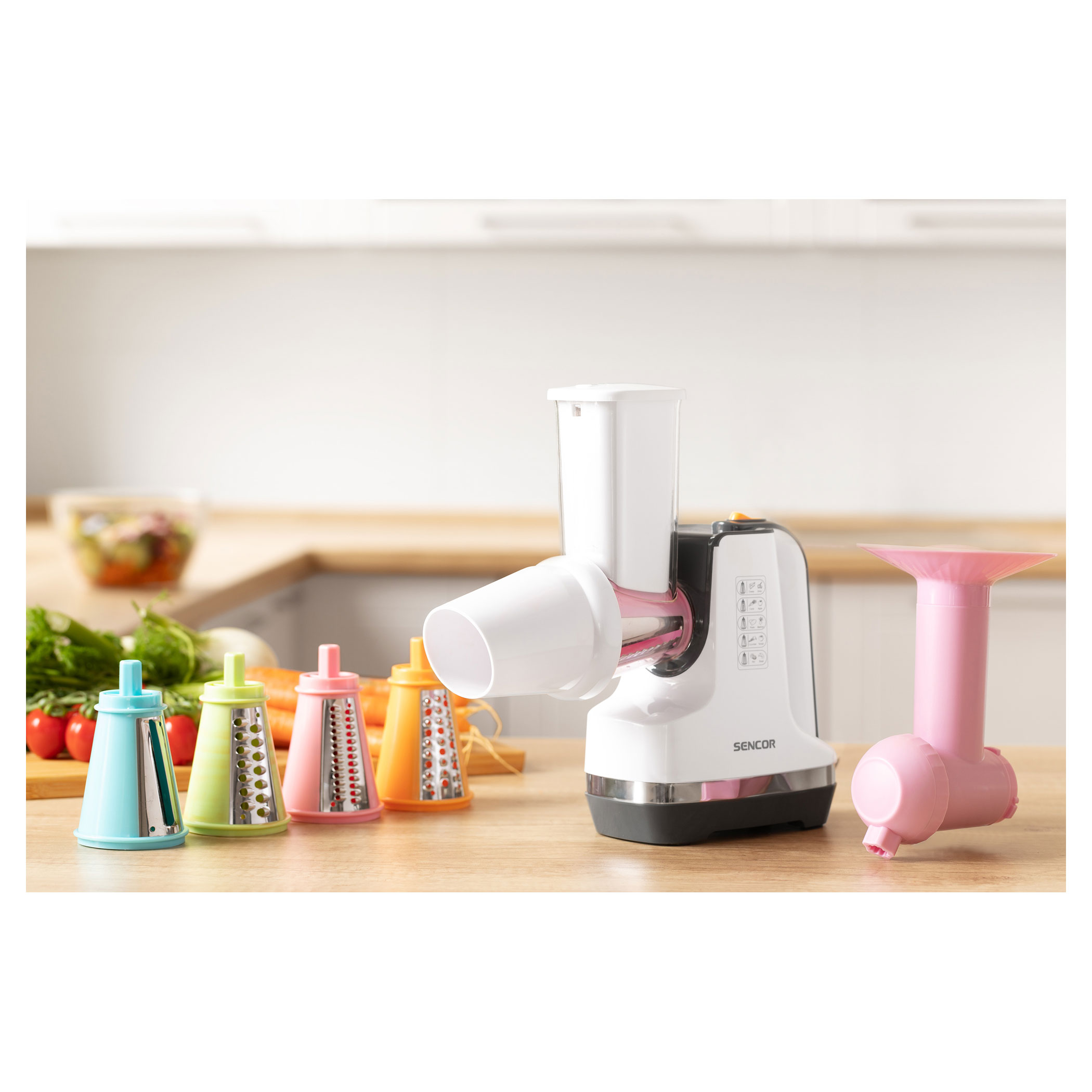 • مبشرة دقيقة في متناول اليد لتحضير سلطات الفواكه والخضروات أو الجبن والخضروات القابلة للدهن ، إلخ.