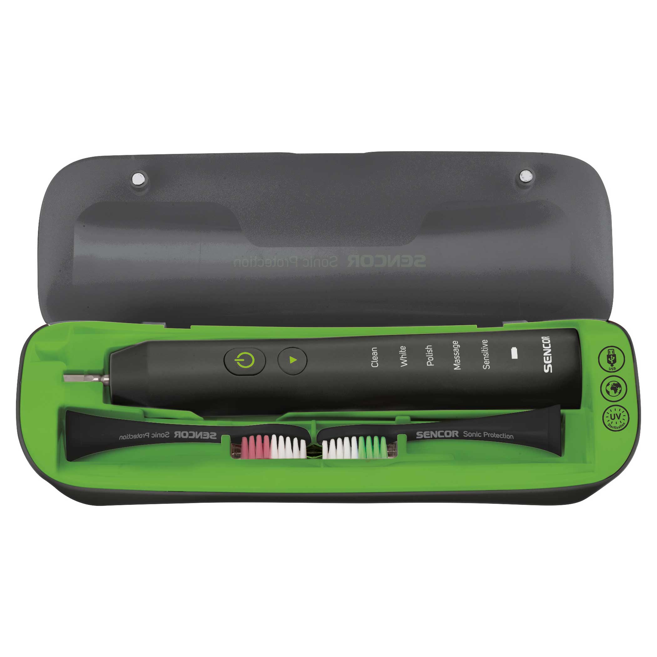 المحتويات المُضمنة: 1 هيكل فرشاة أسنان، 2 رؤوس أساسية، 1 محطة شحن مع حامل في واحد،