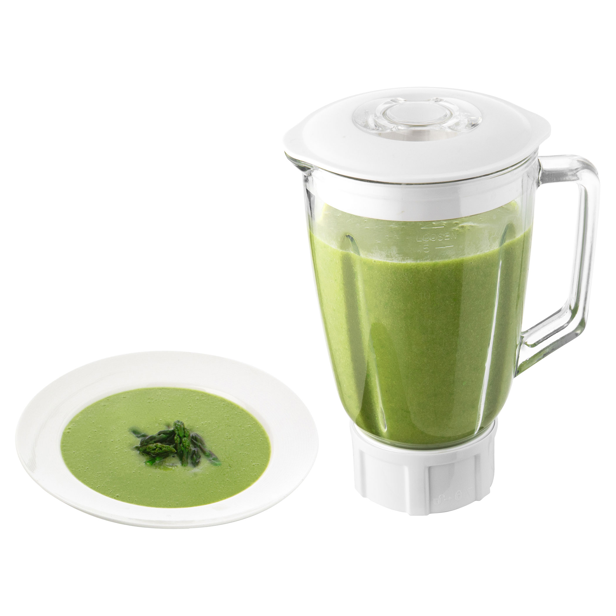 غطاء وعاء شفاف مع أنبوب تلقيم لسهولة إضافة المكونات أثناء المزج