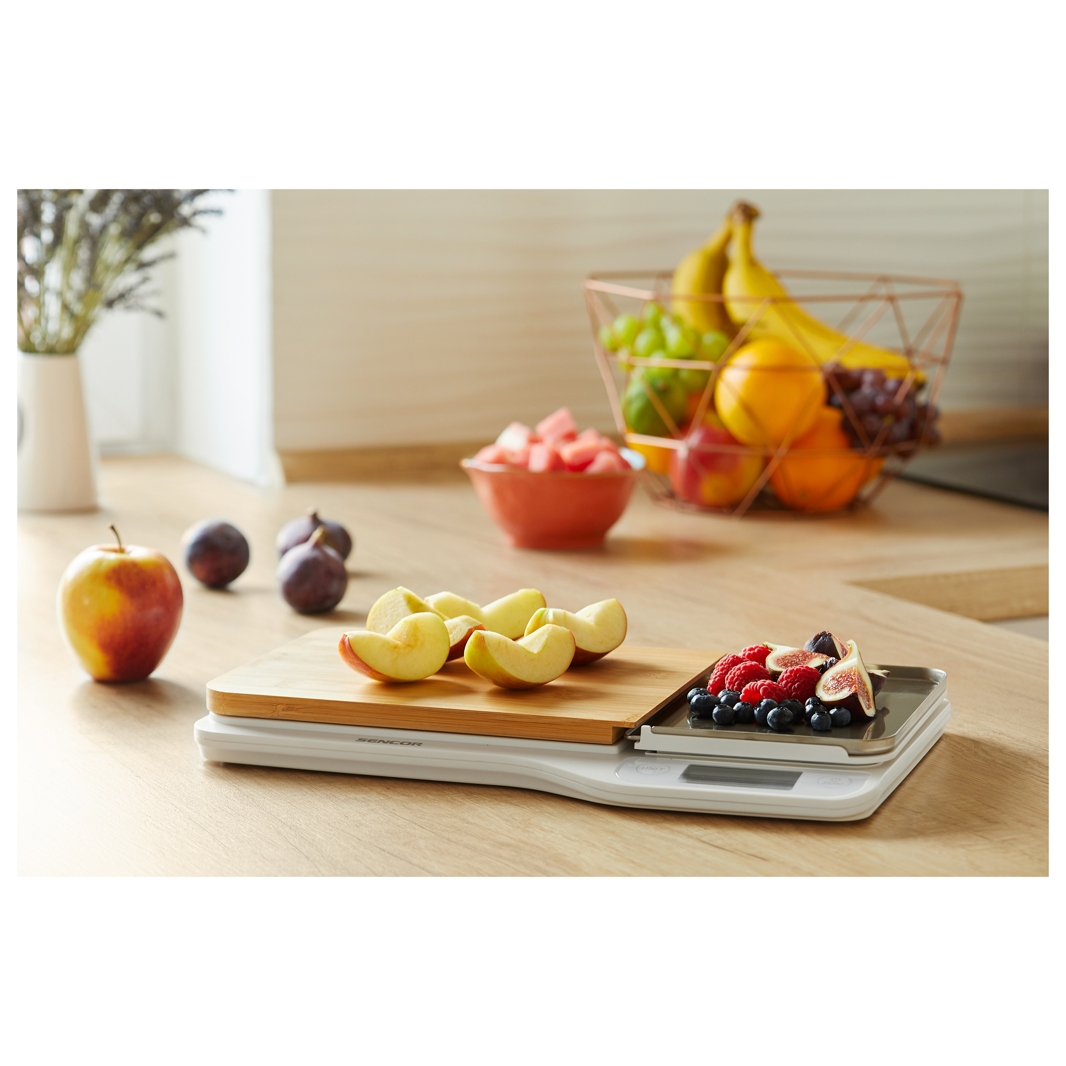 ميزان مطبخ إلكتروني مع لوح تقطيع من الخيزران الطبيعي و صينية ستانلس ستيل قابلة للفصل