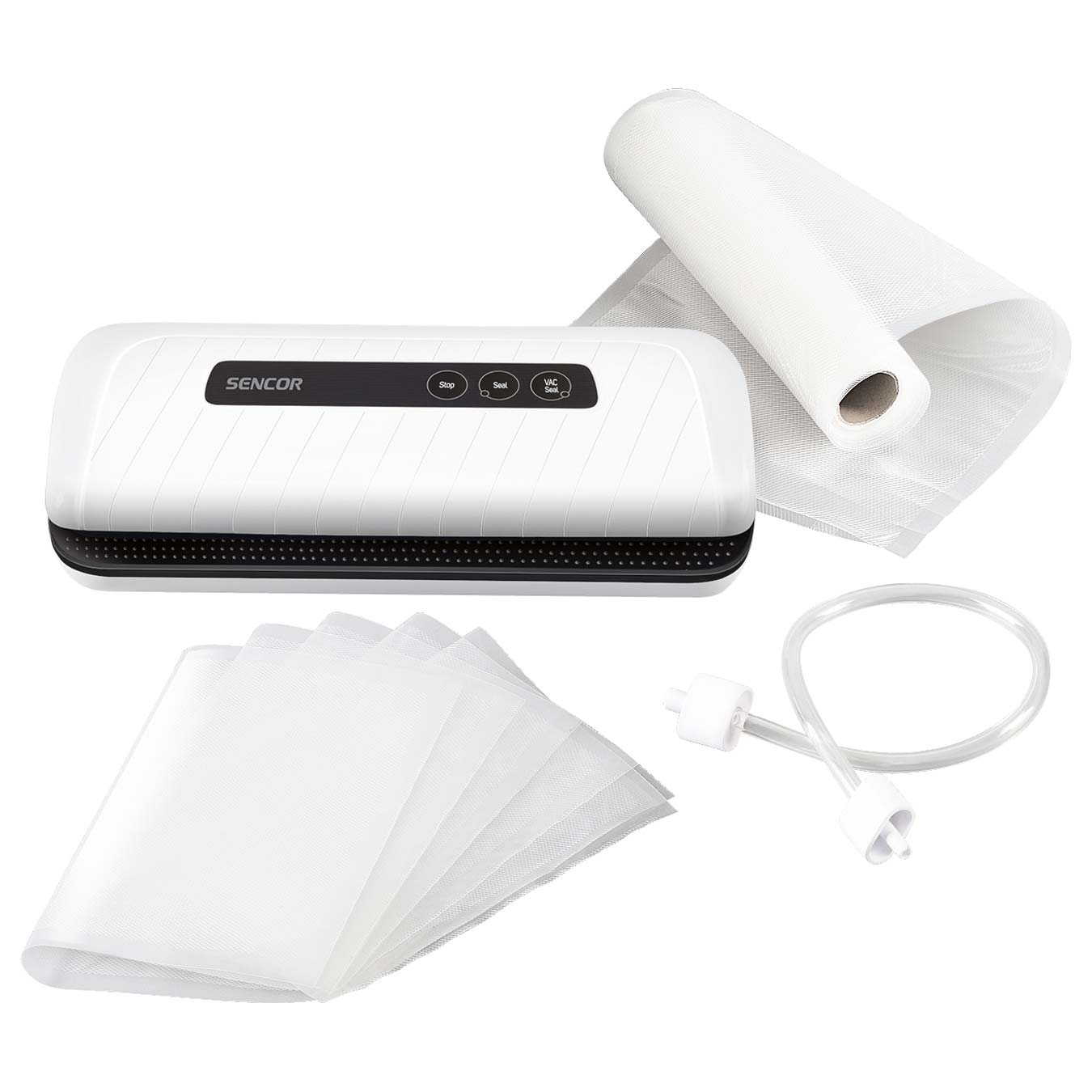 المحتويات المُضمنة: آلة غلق التفريغ، خرطوم أكياس، 5 أكياس آلة غلق التفريغ 20x30 سم، و1 شريط تفريغ 20x200 سم